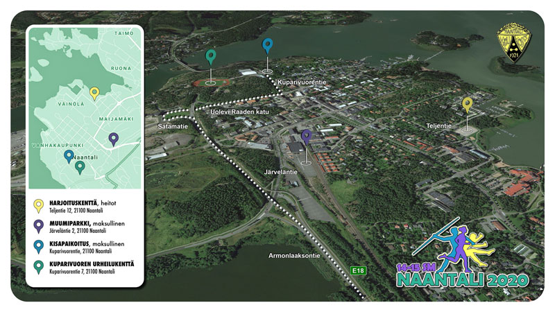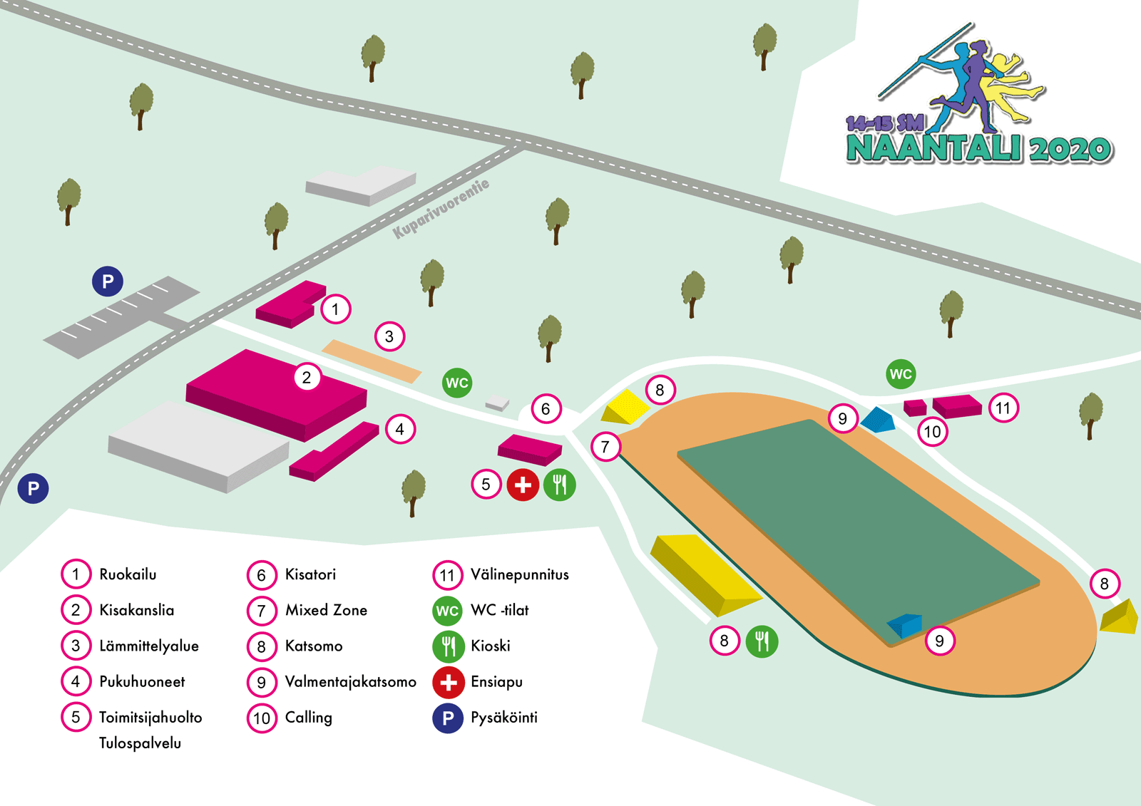 Naantalin Löyly myy jokaiseen SM-kisojen päivään verkkokaupassaan 170 kpl parkkilippuja, jotka oikeuttavat päiväpysäköintiin kentän välittömässä läheisyydessä. Pysäköintipaikat ovat kaupungissa rajalliset ja ostamalla pysäköinnin etukäteen, vältyt etsiskelyltä ja turhalta ajelulta. Lipun lunastaneille lähetetään sähköpostitse pdf-tiedosto, jota näyttämällä pääsee ajamaan parkkialueelle. Vaihtoehtoisesti kisavieraita palvelee Naantalin Muumimaailman maksullinen pysäköintialue, josta on n. 1 km kävely kilpailupaikalle.